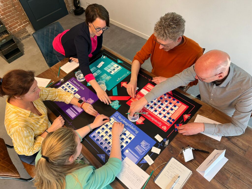 In de simulatie worden teams bestaande uit vier personen uitgedaagd om een druk ziekenhuis te leiden gedurende een gesimuleerde periode van 24 uur. Patiënten en personeel arriveren en vertrekken, workloads zijn ongelijk, gebeurtenissen duiken onverwachts op, spelers moeten beslissingen nemen en met elkaar in gesprek – en scores verzamelen zich. Spelers voeren verschillende functies uit, maar beseffen zich uiteindelijk dat ze ook van elkaar afhankelijk zijn. Ze worden onder druk gezet door tijdslimieten, kwaliteits- en kostenmaatregelen en interacties met collega’s. Ze ontdekken dat ze kwaliteits- en kostenproblemen alleen kunnen oplossen als ze grensoverschrijdend samenwerken, openstaan voor nieuwe werkwijzen en als ze hun beslissingen baseren op goede analyses van de juiste gegevens. Na de simulatie brengt een begeleide ‘groepsdebrief’ de belangrijkste lessen aan het licht en worden praktische verbeterkansen voor uw organisatie benoemd.